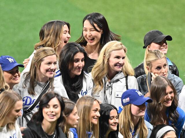 ドジャースの奥さまたちで構成される「ドジャーワイ*」のインスタグラムに新規投稿され、ドジャースタジアムで記念撮影した写真がアップされた。