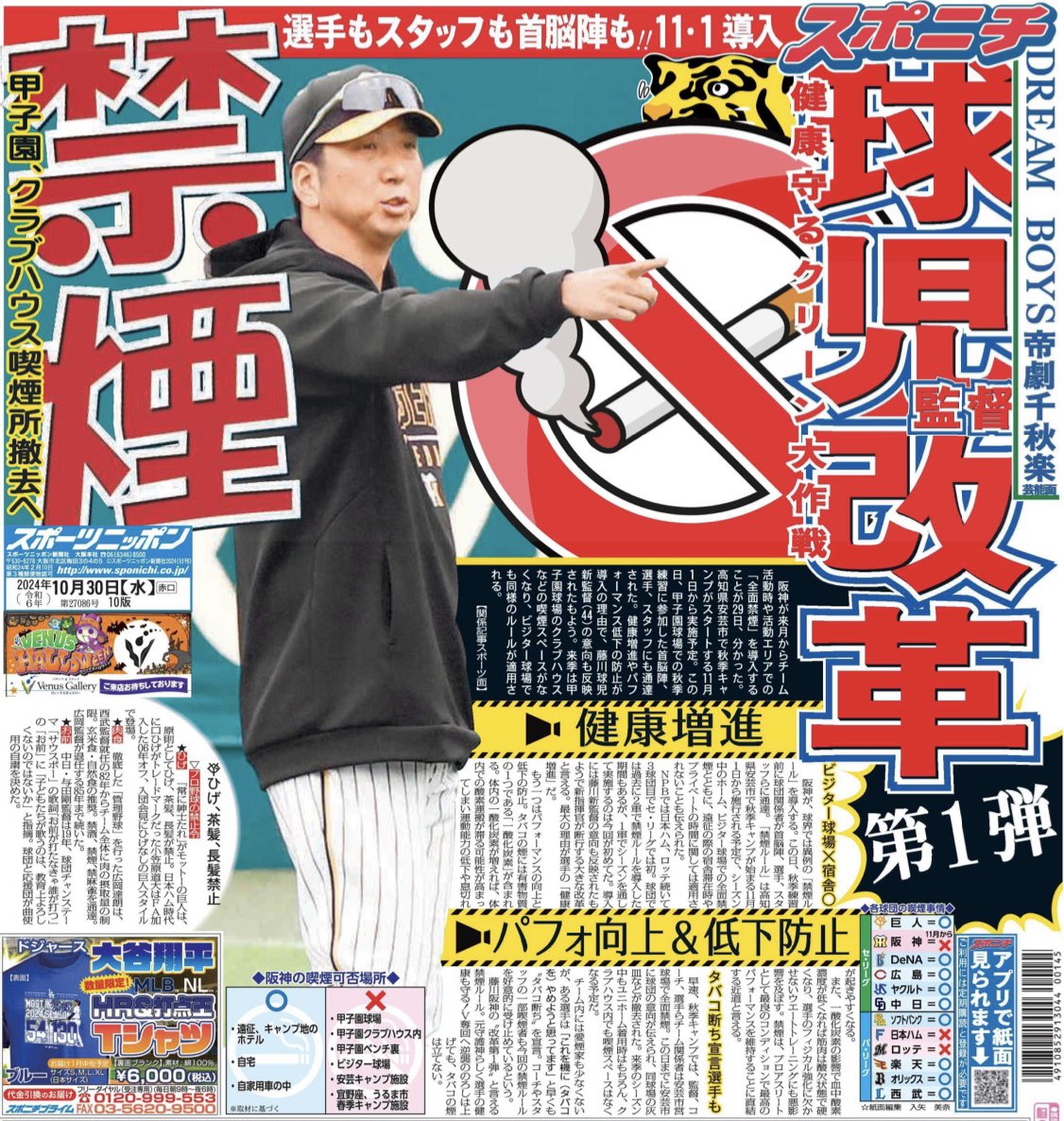 阪神タイガース、改革の第1弾は全面禁煙! 2024年10月30日 カテゴリ:セ・リーグ阪神 (出典 pbs.twimg.com) (出典 pbs.twimg.com)(出典 【野球】阪神・11月から「全面禁煙」導入 球児監督改革第1弾 チーム活動時は選手もスタッフも首脳陣も [ニーニーφ★]) 【阪神タイガース、改革の第1弾は全面禁煙!】の続きを読む タグ :#阪神タイガース